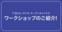 オープンキャンパス2025で、短期大学部が実施するワークショップ4講座をご紹介します。 「はしっこプロダクトワークショップ」「テキスタイル★クラフトマーケット」「走って走って1・2・GO!(手描きアニメーションでキャラク